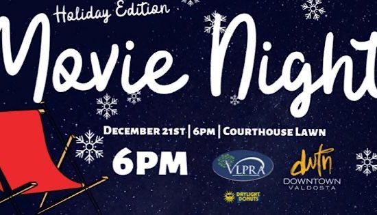 VALDOSTA, Ga. - On December 21, 2019, at 6 p.m., VLPRA will be hosting a downtown movie on the courthouse lawn. Bring your kids, or a date, or yourself, and plant yourself on the grass…