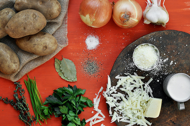 - 2 pounds russet potatoes, peeled and thinly sliced into rounds