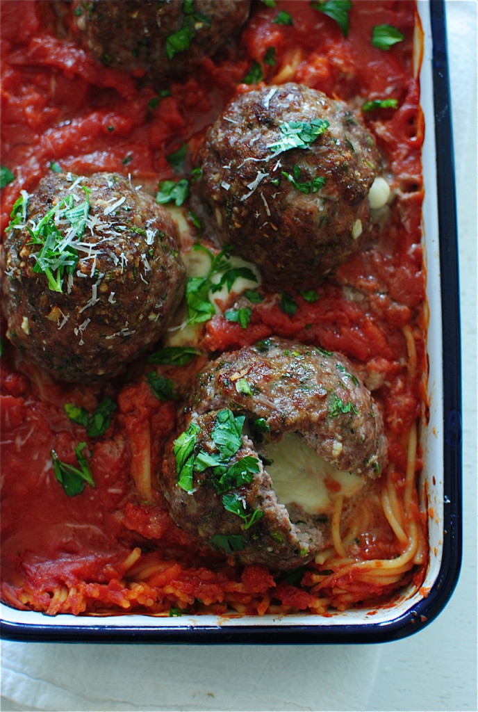 Giant Mozzarella-Stuffed Meatball and Pasta Bake