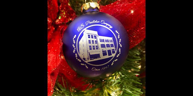 The royal blue ornament was designed by the Main Street staff and features the A.S. Pendleton Company building, which was built circa 1897and is located at 109 S. Ashley Street. The building now houses Coleman Talley, LLP.