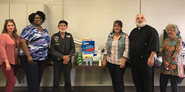 Father Mark was accompanied by a few of the riders, who graciously assisted in unloading the van. Father Mark is part of the Clean Kid Backpack program.