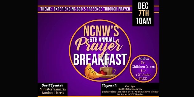 The purpose of the prayer breakfast is to pay homage to the organization’s founding day from the late Dr. Mary McLeod Bethune (December 5, 1935), and provides the opportunity for the local section to celebrate their growth and progress over the years.