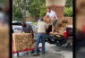 Photo: Christopher Vinson, Bryan McLain, and Randy Register unloading Lysol wipes.