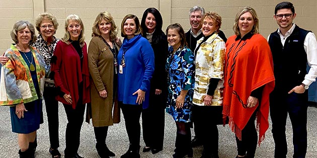 Photo: L-R: Mala Vallotton, Cheryl Oliver, Jennifer Powell, Nancy DeRuyter Warren, Tina Folsom, Jennifer Alvarez, Sementha Mathews, Bob Goddard, Jeani Synyard, Lisa Posas and Adam Setser ham it up for the camera.