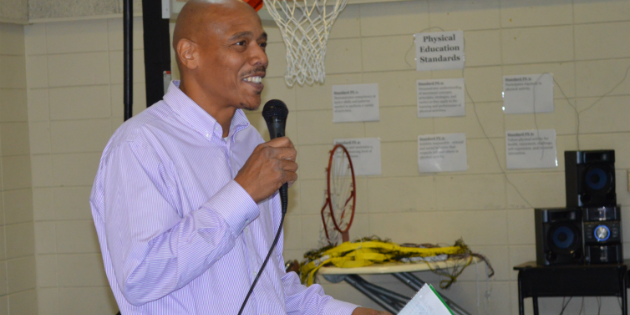 Photo: Mr. Percy Chastang with South Health District’s Adolescent and Youth Development program speaks to VECA students during Georgia Apply to College Week