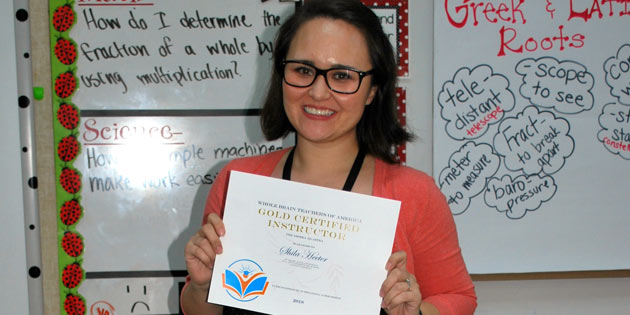 W.G. Nunn Elementary School 4th grade teacher, Mrs. Shila Heeter, recently attained the “Gold Certified Instructor” designation with Whole Brain Teachers of America. During the 2017-2018 school year, Mrs. Heeter was named as a Whole Brain Teaching Intern after submitting a video application to the executive board. Through her internship, she worked closely with a WBT executive board member to refine the use of WBT strategies in her 4th grade math and science classroom. In order to attain gold level certification, she submitted numerous videos of her classroom instruction, took online assessments, did a book study, and wrote essays. As a Gold Certified Instructor, Mrs. Heeter will soon be able to provide introductory Whole Brain training with the guidance and support of Whole Brain Teachers of America.