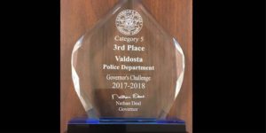 This year the Valdosta Police Department placed third among agencies their size in the state. The recognition is based on The Valdosta Police Department’s policies, training, incentives and recognition. Also necessary is public information & education, enforcement, effectiveness, and quality of application.