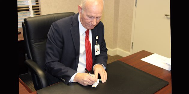 PHOTO: SGMC Interim CEO Bill Forbes signs a rose vial to be put on the Donate Life Rose Parade Float to represent South Georgia