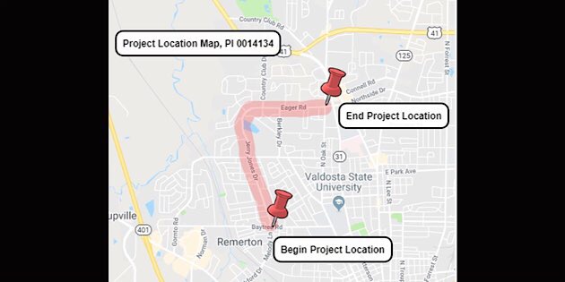 The road, which carries traffic from the commercial area around Valdosta Mall to the north side of town, operates insufficiently. The current construction estimate is approximately $13 million with an estimated construction time of 24 months. At this time the project is scheduled to be advertised for bid in 2020.