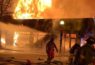 The conflagration in the cold December night, with a wide-eyed full moon staring down, drew onlookers.