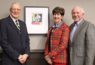 Photo: (WGTC Art Donation.jpg) Wiregrass friend and supporter, Dr. Ron Zacaari is standing next to one of his art pieces with Wiregrass President Dr. Tina K. Anderson and TCSG Board Member Ben Co