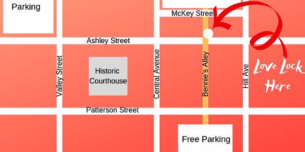 The second part of this promotion is the Valdosta Love Lock Fence. This fence will be installed in Bennie’s Alley where citizens can add a lock to signify their unbreakable love for their partner, children, or even pets. This is a free public art project that citizens are encouraged to participate in. The fence is scheduled to be in the alley from February 1 to February 28.