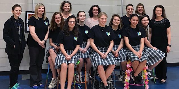 SJCS XSTREAM 1: SJCS eighth graders, hosts of the X-STREAM Women’s Gala, pose with their teachers.