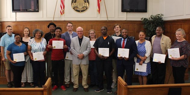 The seven-week program, an initiative of the Valdosta Mayor and City Council, attracted citizens from all walks of life—from student to educator, professional to retired, and everything in between—with the common goal of learning about the programs and services of their city government. The class of 2019 includes Cheryl Acree, Kevin Bussey, Janice Clark, Donnell Davis Jr, Marie Guest, Ray Hannah, LeDiana Harrison, Sean Hoke, Cali Kent, Taylor Marzell, Thomas McIntyre, Thomas McIntyre Jr, Megan Molargik and James Theobald.