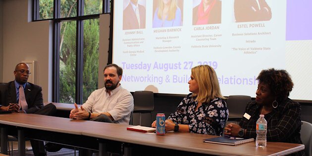 The panel consisted of Johnny Ball, Assistant Administrator (South Georgia Medical Center); Meghan Barwick, Marketing & Research Manager (Valdosta-Lowndes County Development Authority); Carla Jordan, Assitant Director of the Career Services Team (Valdosta State University), and Estel Powell, Business Solutions Architect, (Intrado).