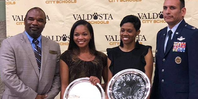 The 2019-20 teachers of the year award went to Mrs. Natasha Berry from Sallas Mahone Elementary School and Mrs. Melvina Murray from S.L. Mason Elementary School. Since Mrs. Murray is relocating with her husband for the United States Air Force, Mrs. Berry will move on to represent Valdosta County Schools in the Georgia Teacher of the Year Program.