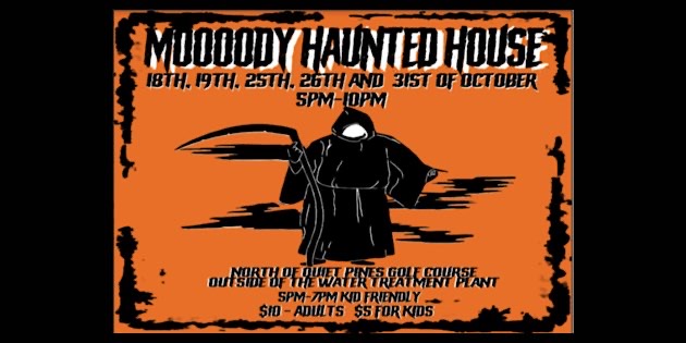 Don’t forget about the 40th Annual Mooooody Haunted House, first left (Moody Rd) after the north gate of Moody AFB. Prices and times on page background picture. Open October 25th, 26th, & 31st and it has been going on since 1980.