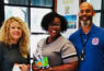 Their first visit included the delivery of much needed school supplies. Pictured from left are W.G. Nunn school counselor, Mollie Barnes, Tabora Temple, Wiregrass Military and Veterans Services Director, and Marvin Martin, Wiregrass Student Veterans of America Valdosta Campus President.