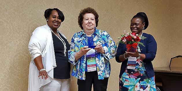 Kia Redwine and Tracey Green presenting Kathleen Moore with the “Kathleen Moore Mentor Award.”