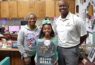 Precious Griffin, a fifth-grade student at Sallas Mahone Elementary School, was presented the backpack by DeWayne Johnson, organizer of the giveaway, with her mother Shelbie Preston and Principle Dr. Autrice Haugabrook in attendance for support.