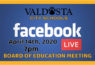 Due to the public health emergency declared by the Governor and confirmed by the General Assembly, the Valdosta City Board of Education will conduct their regular meeting by video conference shared via Facebook Live on Tuesday, April 14, 2020 at 7:00 PM. Anyone wishing to observe the meeting may do so by using the following web address: https://www.facebook.com/valdostacityschools/. To view the meeting agenda, click here. (https://bit.ly/2xjfudk)