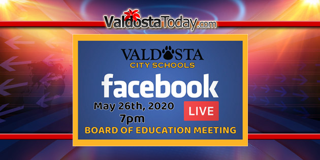 Due to the public health emergency declared by the Governor and confirmed by the General Assembly, the Valdosta City Board of Education will conduct their work session by video conference shared via Facebook Live on Tuesday, May 26, 2020 at 7:00 PM. Anyone wishing to observe the meeting may do so by using the following web address: https://www.facebook.com/valdostacityschools/. To view the meeting agenda, click here. (https://bit.ly/2VHL8uo)