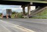 Sludge seeped through the joint between the inside and middle southbound lanes Monday afternoon during an operation to relocate an existing utility fiber optic line underground. This has affected a short segment of asphalt north of the overpass.
