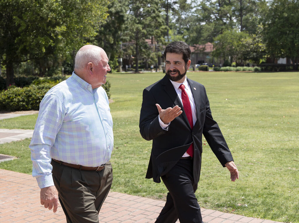Appointed by the Board of Regents, of which Reynolds and Evans are members, Perdue began his duties as the USG’s 14th chancellor on April 1. He is a veterinarian, an agribusiness owner, and a veteran of the U.S. Air Force. He served in the Georgia Senate from 1991 to 2001, as governor of Georgia from 2003 to 2011, and as U.S. Secretary of Agriculture from 2017 to 2021. He has said that his latest role in higher education may be his most important one yet, and he “can’t think of a better way to make a difference than to help prepare the next generation.”