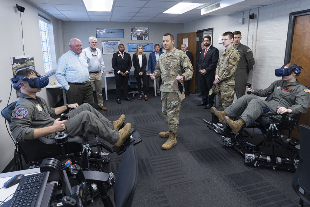 • Aerospace Studies — Major Stephen Ott and cadets from VSU’s Air Force ROTC Detachment 172 introduced the USG leaders to their new flight simulation room. The technologically advanced simulation room will give VSU cadets a competitive advantage when competing for rated jobs — pilot, combat air system operator, remotely piloted aircraft pilot, and air battle manager — in the military. The competition for these jobs is stiff, with the best and most qualified cadets across the nation competing against each other. VSU’s investment in its Aerospace Studies Program has already had a significant influence on the success of the cadets. The spring graduating class of cadets had a 100 percent selection rate for these coveted Air Force roles, including five pilots, two combat air system operators, three remotely piloted aircraft pilots, and one air battle manager.