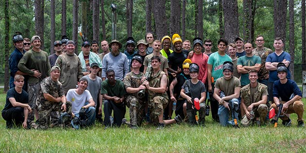 Photo: U.S. Air Force Airmen assigned to the 23rd Maintenance Group pose for a photo at Moody Air Force Base, Georgia, June 17, 2022. The Airmen used Unite funds to host a paintball and pizza event. Unite funds help cover the cost of recreational activities for active duty, reservist and civilian employees in each unit. (U.S. Air Force photo by Airman 1st Class Deanna Muir)