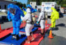 Fire crews were dispatched to a simulated release of unknown chemicals requiring them to investigate the substance and its potential dangers. Once the material was identified, personnel formulated a plan, based on training and best practices, to contain the material to protect the environment and nearby citizens from potential contamination.