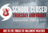 “Due to the threat of inclement weather and out of an abundance of caution, a decision has been made to close all Lowndes County Schools and system offices tomorrow, Thursday, September 29th, and Friday, September 30th.