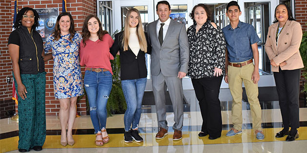 Photo (l-r): Dr. Marci Marshall, VHS Counselor, Mrs. Joy Roberts, Miss Riley Diaz, Miss Skylar Partin, Mr. Jeremy Paradice, Ms. Sarah Broome, Mr. Dhruv Thanki and Dr. Janice Richardson, VHS Principal