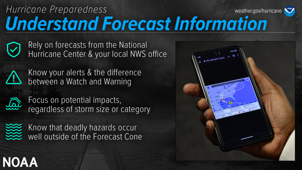 - Tuesday, May 2: Understand Forecast Information. Prepare for hurricane season by knowing how to understand forecasts. They can tell you a lot about what is expected.