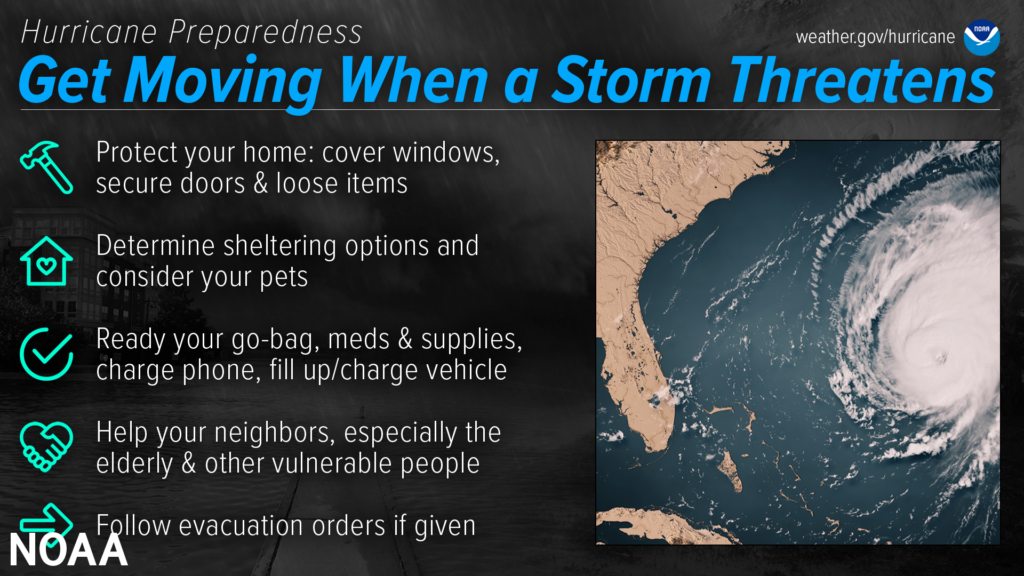- Wednesday, May 3: Get Moving When a Storm Threatens. Do you know what to do when a storm threatens? Prepare for hurricane season by taking the time now to understand the actions needed when time is of the essence.