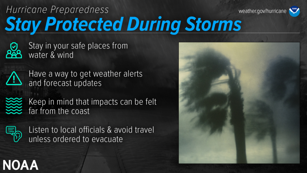 - Thursday, May 4: Stay Protected During Storms. Be prepared for hurricane season by knowing what to do during a storm. Whether you’ve evacuated or are sheltering in place, know what to expect from the hazards you may face.