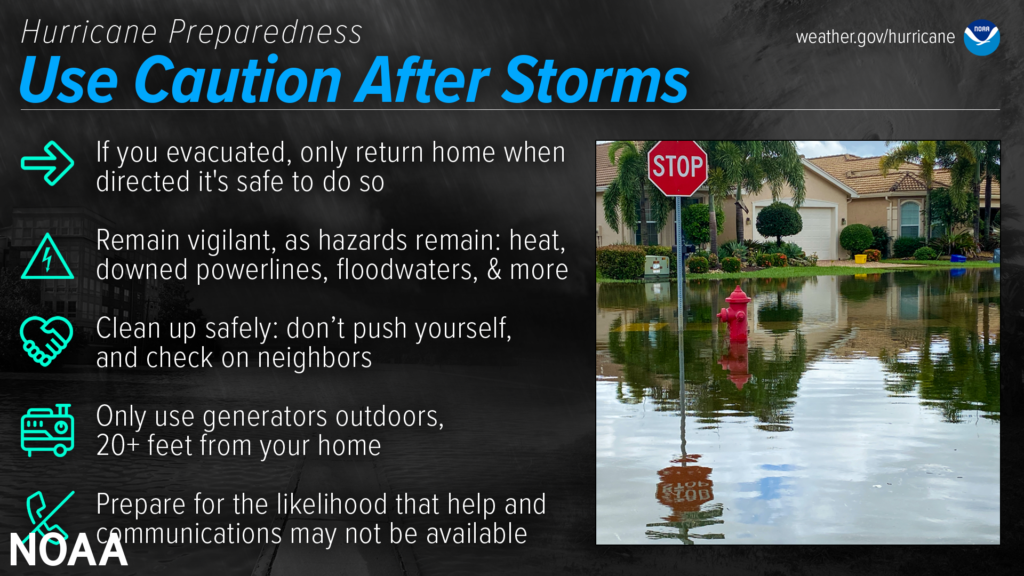 - Friday, May 5: Use Caution After Storms. A key part of hurricane preparedness is understanding the dangers that remain, well after a storm.