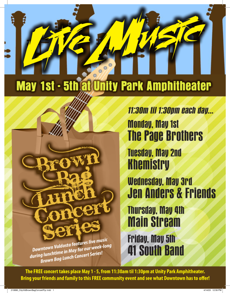 The Main Street Office will host the Brown Bag Concert Series in Downtown Valdosta from May 1 to May 5.