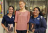 Photo: Souad Dennis (left) and Leah Sinclair (right) receive copies of the Art of Writing7anthology from Turner Art Center Art Education Administrator Hailey Rathmann.