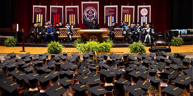 Following Davis’ remarks, FHU President David R. Shannon shared words of encouragement on social media. “Congratulations to our graduates! Just as with physical families, you leave home but don’t stop being family. So until the next time we see you, live for His glory! Second, I want to express deep appreciation to our faculty and staff for their selfless service and their genuine love for students and each other. Being among these students, faculty, staff, administration, board, alums, and friends is truly a blessing.”