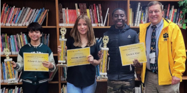 Emrick Kier was the first place winner.  Sophia Moore came in 2nd with Edward James bringing in 3rd.  It was a close competition. They will all go on to represent VMS at the VCS District Spelling Bee. VMS also would like to thank Dr. Debbie Paine from VSU for being our caller and April Doyle, Johnny Ball, and Tiffany Johnson Lewis for judging the competition. Way to go Cats!