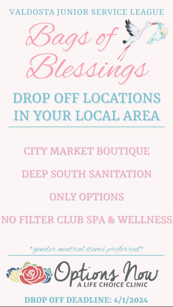 The Valdosta Junior Service League is kicking off an important diaper drive called “Bags of Blessings” to support expecting mothers in need through Options Now!