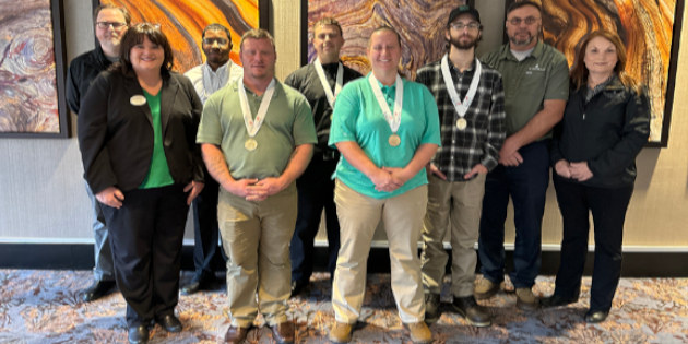 Photo: Front row, L to R – President DeAnnia Clements, Gold Medalists Damon Sawyer and Kris Petron in Automated Manufacturing Tech. Back row L to R – Wiregrass Computer Information Systems Program Coordinator Tim Drexler, Gold Medalists Jordan Hill, and Jed Stone in Interactive App/Video Game Development and Gold Medalist Tyler Schweiger in Automated Manufacturing Tech, Wiregrass Precision Machining and Manufacturing Program Coordinator Darron Lanier, and Wiregrass Director of Campus Life and SkillsUSA Advisor Kelley Wetherington