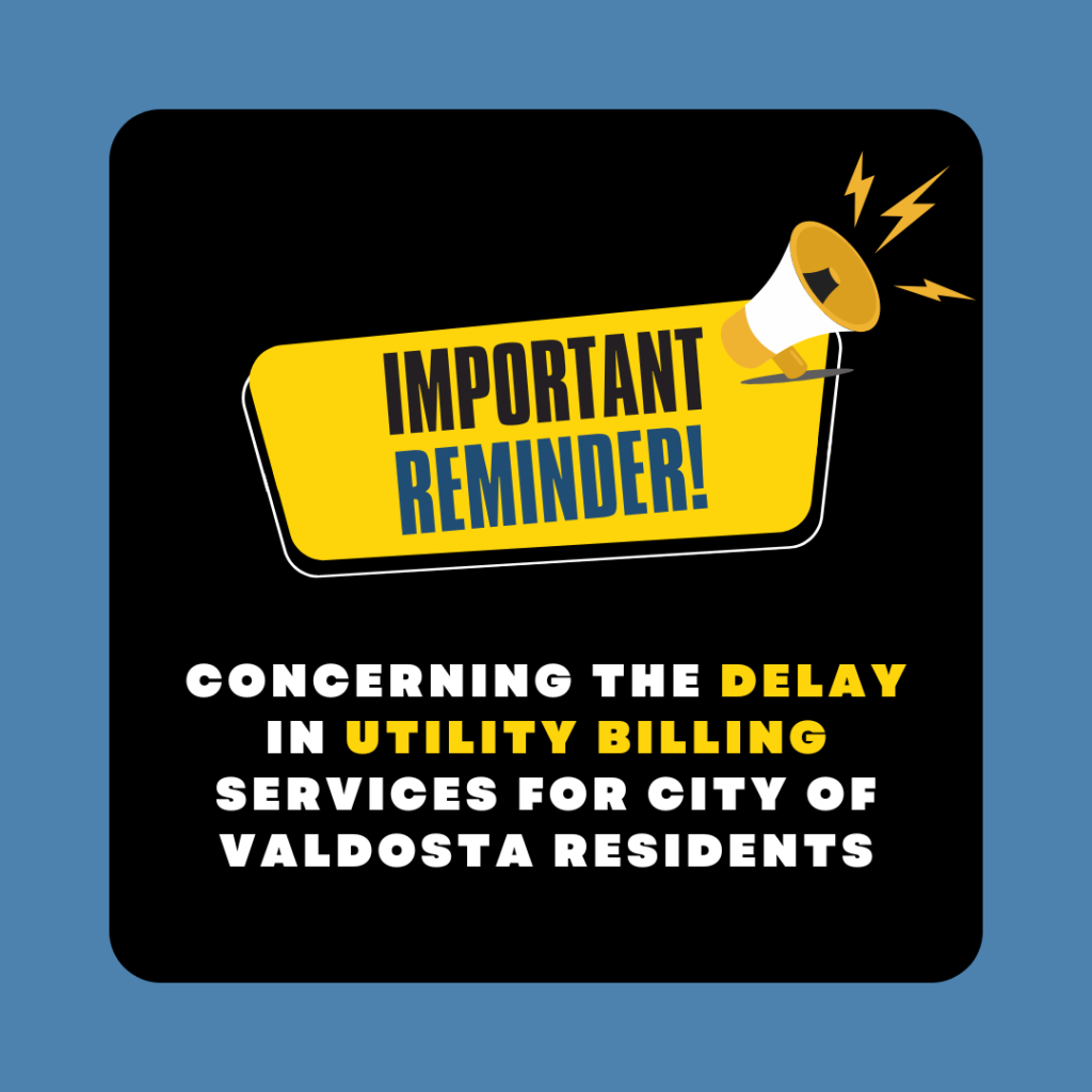 The City of Valdosta regrets to inform its valued customers of a temporary delay in billing for utility services. This delay is a result of unforeseen circumstances affecting our meter reading department, causing a delay of up to one week in the billing process.
