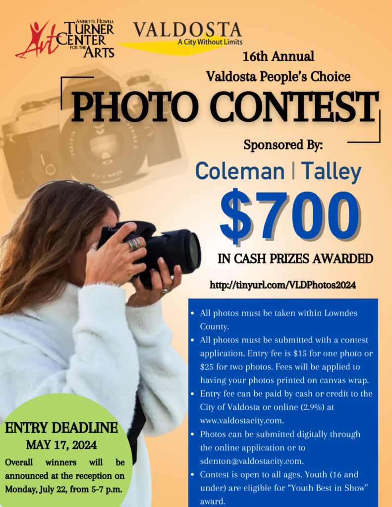 The City of Valdosta is thrilled to announce the commencement of the 16th Annual Valdosta People’s Choice Photo Contest in collaboration with the esteemed Annette Howell Turner Center for the Arts. As a longstanding tradition spanning a decade, this event continues to inspire residents to encapsulate the essence of life in Valdosta through the lens of their cameras.