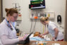 Photo: Two students working inside the College of Nursing and Health Sciences’ Simulated Training Encounters with Patients (STEP) Center, where they use concepts taught in the classroom to safely practice a medical procedure they may someday perform in real life on real patients.
