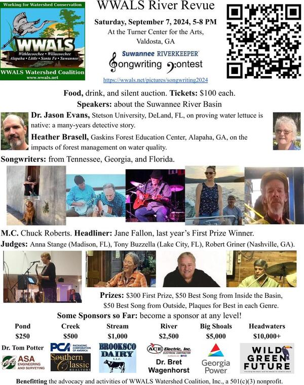 Mission: WWALS advocates for conservation and stewardship of the surface waters and groundwater of the Suwannee River Basin and Estuary, in south Georgia and north Florida, among them the Withlacoochee, Willacoochee, Alapaha, Little, Santa Fe, and Suwannee River watersheds, through education, awareness, environmental monitoring, and citizen activities.