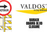 The City of Valdosta’s Stormwater Division will close N. Barack Obama Blvd. from Northside Dr. to Eastwind Rd. starting September 3rd at 7:00 a.m. for necessary repairs. The project is anticipated to last two weeks and, weather permitting, be completed by September 17th. Detour signs will be posted, and motorists are urged to follow all traffic control signs and exercise caution in the area. For any questions, please contact the Engineering Department at 229-259-3530.