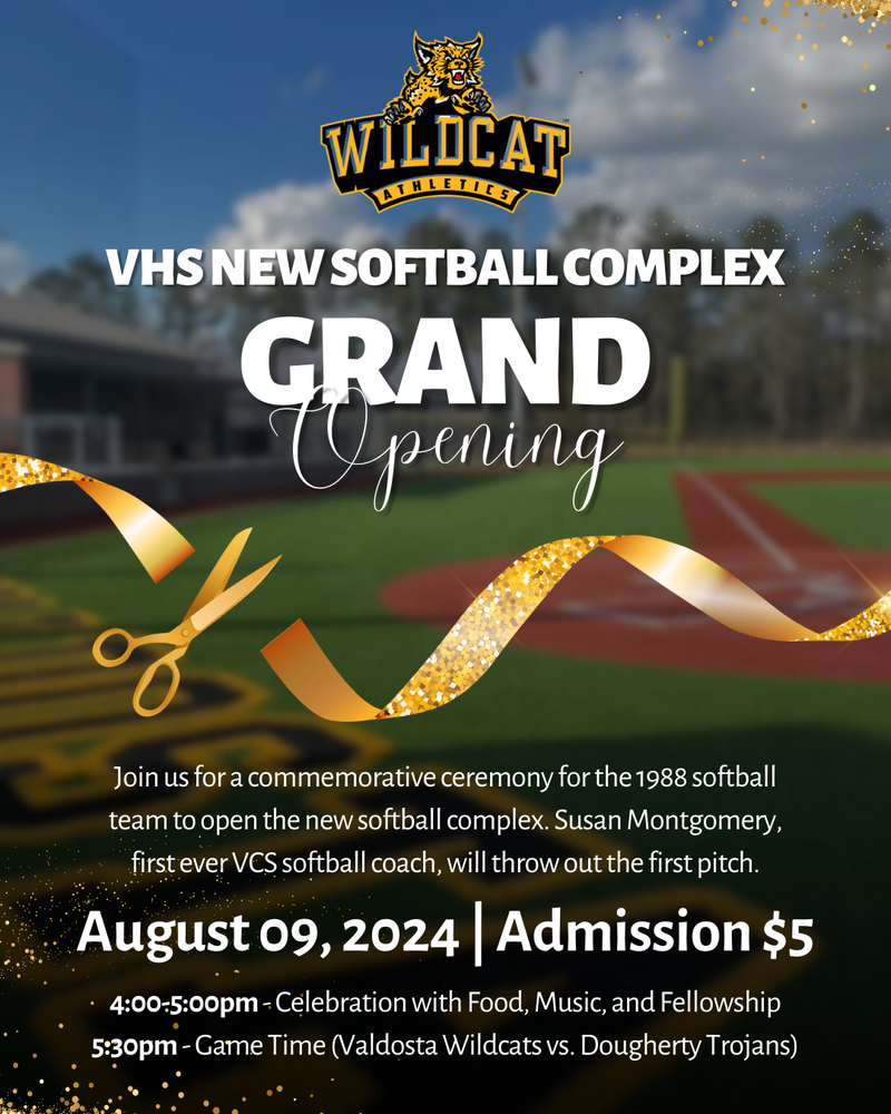 You don’t want to miss the Grand opening of the new Softball Complex at Valdosta High School hosted by the VCS Athletic Department.