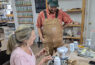 Photo: Turner Center Ceramics Instructor Ramiro Santillan working with a student in a Weekday Pottery Class at the Turner Center for the Arts.